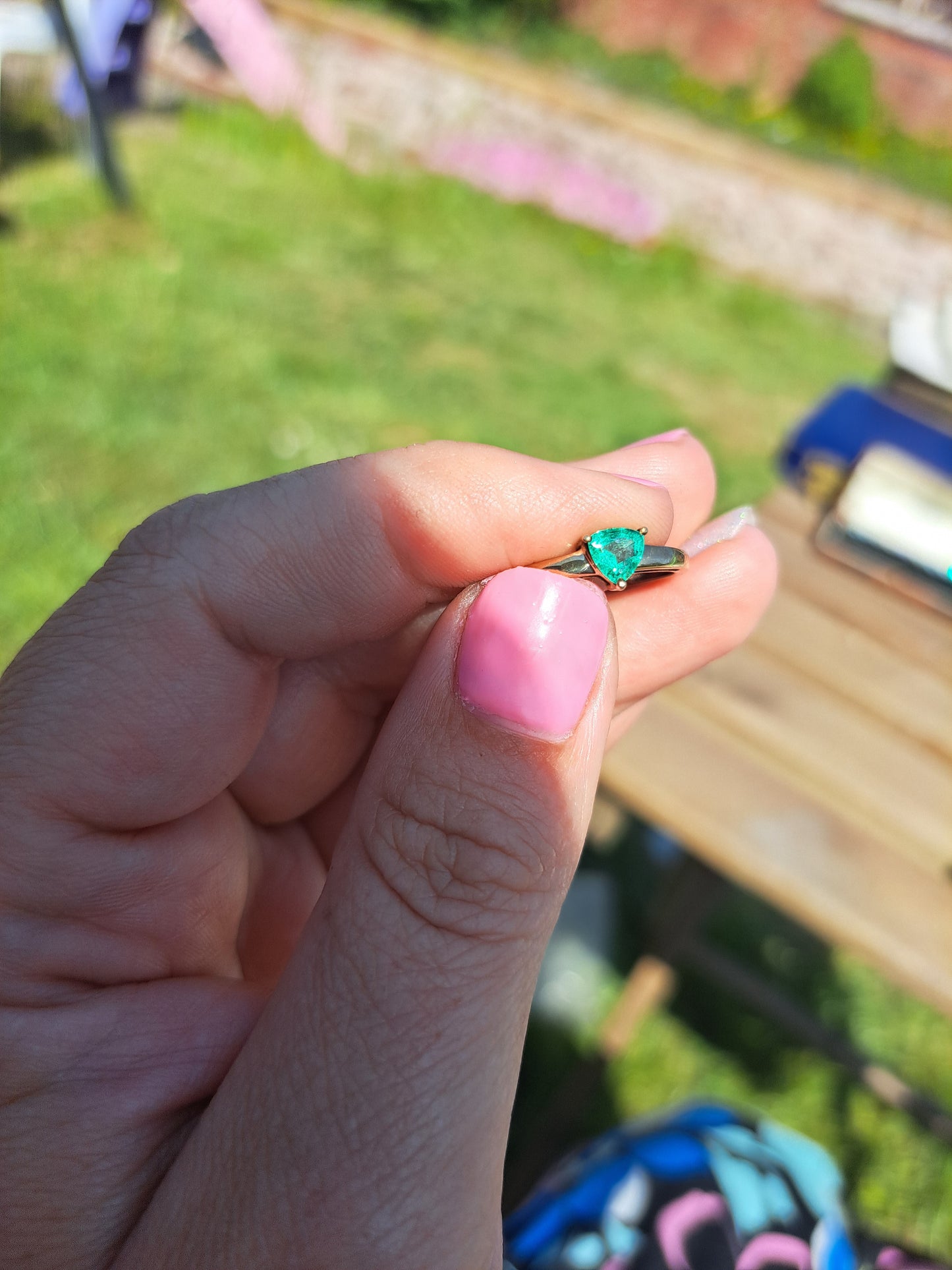 A beautiful oceanic green. Clear to the eye of inclusions. Most likely of Columbian origin.